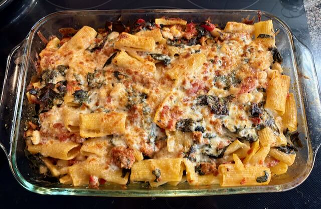Sausage and Swiss chard rigatoni