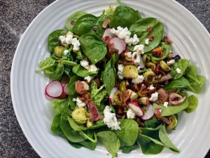 This delicious main-course salad from Canadian Living is a great way to welcome spring. Roast sweet potato, leeks and Brussels sprouts until tender. Meanwhile, cook the bacon, set aside and make the dressing. To assemble the salad, combine spinach, roasted vegetables, edamame and radishes in a bowl, toss with dressing and top with goat cheese, bacon and nuts, if using. Cook’s note: I omitted the edamame and the nuts.